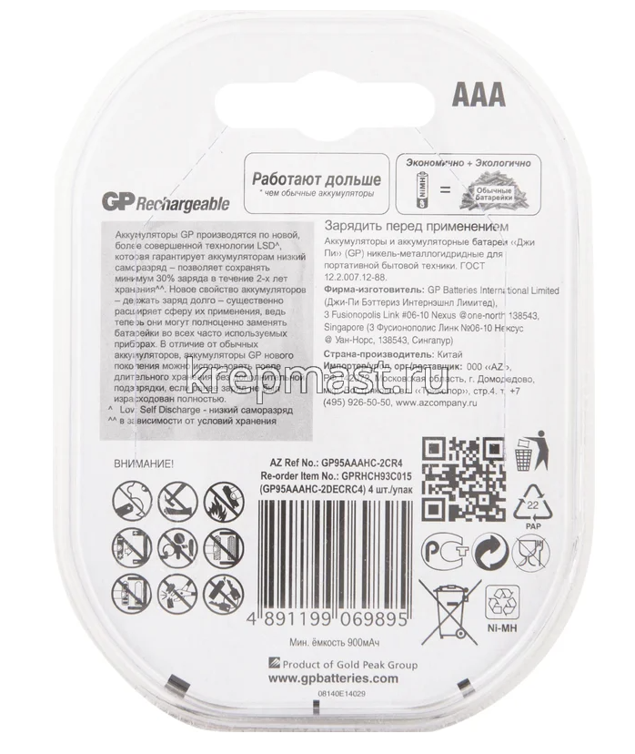 Батарейка Camelion Accu AAА аккумул. в интернет-магазине «Мастер Крепежа» по цене 348 руб. Более 8 наименований товаров в наличии в категории Батарейки для зарядных устройств / ЗУ . Купить батарейка camelion accu aaа аккумул. в Лаишево выгодно Вы можете on-line на нашем сайте, или отправив заявку по почте, а также по телефону или в пункте выдачи компании г. Казань, ул. Татарстан, 9, магазин "Мастер Крепежа". Доставка по Республике Татарстан и другие регионы РФ.