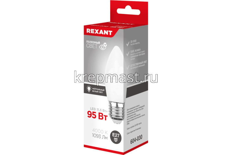 Лампа свеча 11,5Вт Е27 4000K в интернет-магазине «Мастер Крепежа» по цене 153 руб. Более 12 наименований товаров в наличии в категории Лампы светодиод. СВЕЧА. Купить лампа свеча 11,5вт е27 4000k в Лаишево выгодно Вы можете on-line на нашем сайте, или отправив заявку по почте, а также по телефону или в пункте выдачи компании г. Казань, ул. Татарстан, 9, магазин "Мастер Крепежа". Доставка по Республике Татарстан и другие регионы РФ.