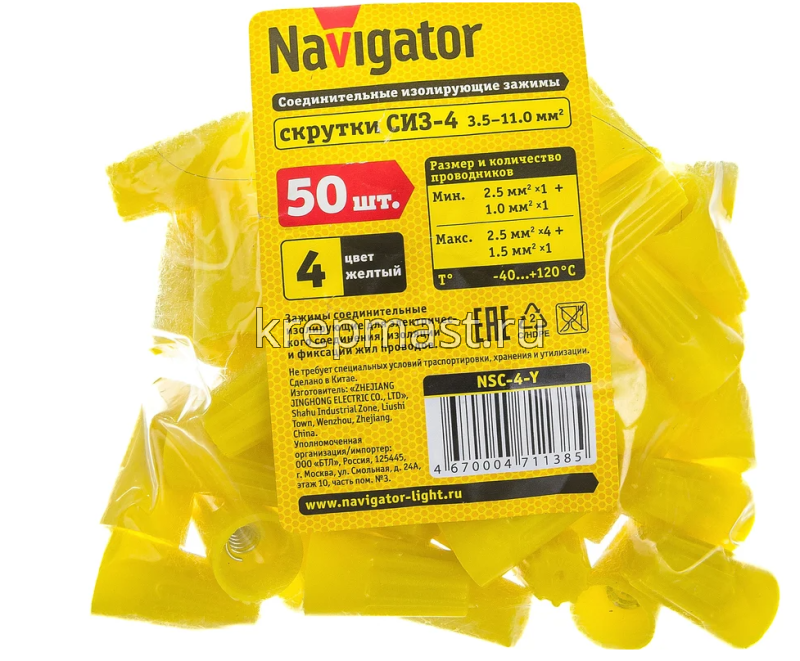 Соединитель проводов СИЗ К4 /3,5-11 желтый - это простое приспособление для фиксации и изоляции пучка проводов в электрических цепях. Изделие обладает корпусом из полиамида, который выступает изолятором и конусообразной анодированной пружиной, которая фиксирует провод. Цвет - желтый.