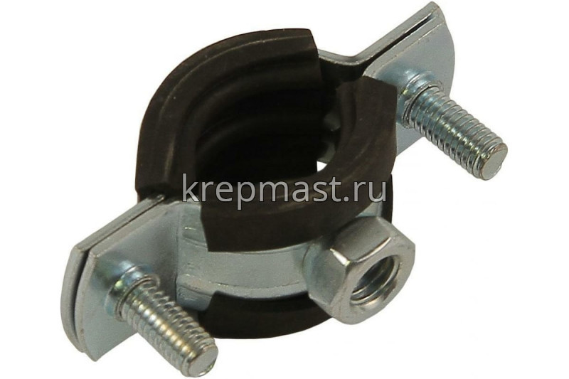 Хомут сантехнический с гайкой 25-28 мм представляет собой две металлические пластины, соединенные по краям регулировочными винтами м5 и резиновым уплотнителем. К хомуту приварена гайка м8 с метрической резьбой. Диаметр обжима трубы составляет от 25 до 28 мм. Изготавливается из оцинкованной стали толщиной 1 мм.