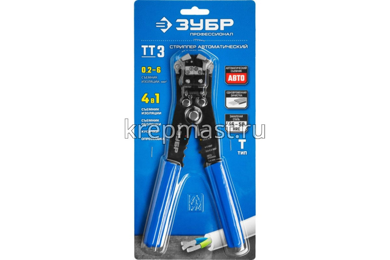 Стриппер ЗУБР ТТ-3 автоматический 0,2-6мм2 - предназначен для снятия изоляции с проводов.