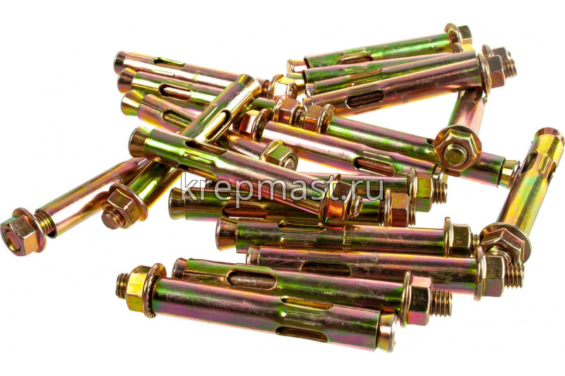 Анкер с гайкой 14 х 100 изготовлен из высокоуглеродистой стали со специальным цинковым покрытием и применяется для надежного крепления тяжеловесных конструкций к твердым основаниям из полнотелых материалов.