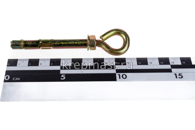 Анкерный болт с кольцом 10 х 80 является элементом крепежа для фиксации тяжелых подвесных конструкций, соединения с тросами и цепями.