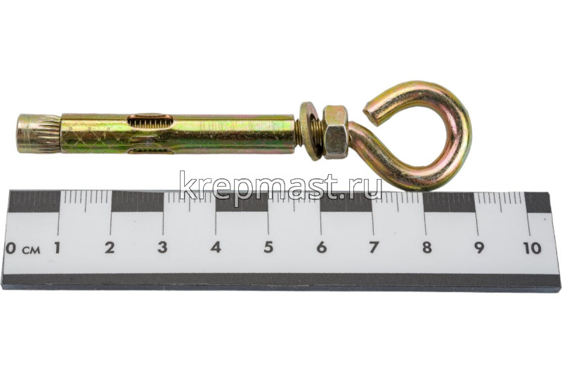 Анкерный болт с кольцом 8 х 60 является элементом крепежа для фиксации тяжелых подвесных конструкций, соединения с тросами и цепями.