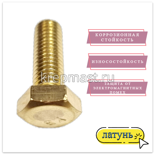 Латунный болт DIN 933 М10 х 30 используется в случае, когда необходимо создать немагнитный узел. Латунный болт М8 применяется в приборостроении, авиации, атомной промышленности. Латунный крепеж стоек к органическим кислотам и углекислым растворам.
