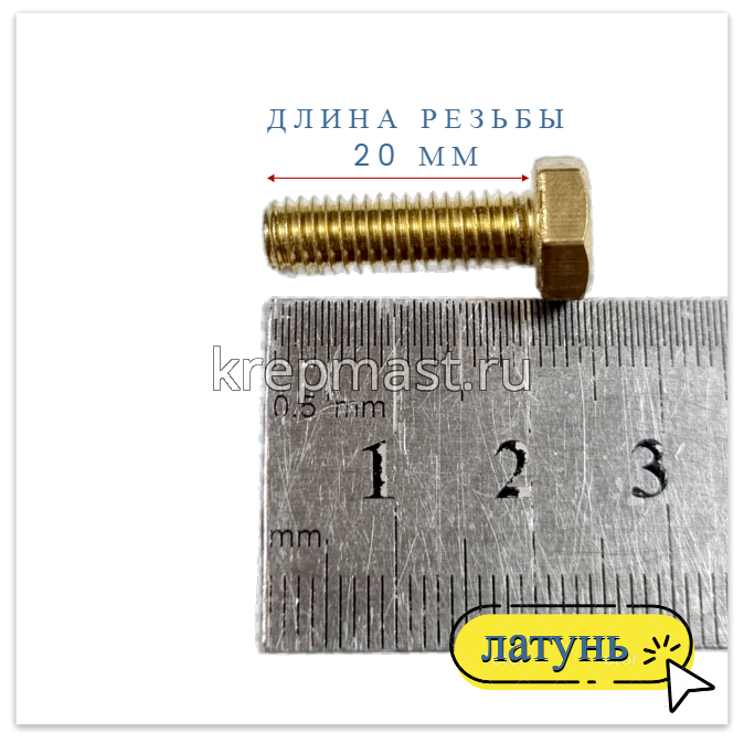 Болт 6х20 DIN 933 латунь в интернет-магазине «Мастер Крепежа» по цене 50 руб. Более 26 наименований товаров в наличии в категории Болты латунные DIN 933. Купить болт 6х20 din 933 латунь в Лаишево выгодно Вы можете on-line на нашем сайте, или отправив заявку по почте, а также по телефону или в пункте выдачи компании г. Казань, ул. Татарстан, 9, магазин "Мастер Крепежа". Доставка по Республике Татарстан и другие регионы РФ.