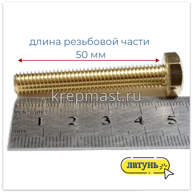 Болт 8х50 DIN 933 латунь в интернет-магазине «Мастер Крепежа» по цене 306 руб. Более 26 наименований товаров в наличии в категории Болты латунные DIN 933. Купить болт 8х50 din 933 латунь в Лаишево выгодно Вы можете on-line на нашем сайте, или отправив заявку по почте, а также по телефону или в пункте выдачи компании г. Казань, ул. Татарстан, 9, магазин "Мастер Крепежа". Доставка по Республике Татарстан и другие регионы РФ.