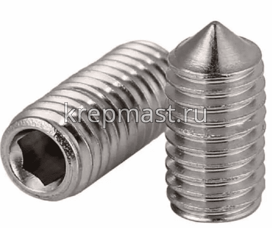 Винт нержавеющий установочный с внутренним шестигранником и заостренным концом DIN 914 5 х 6 А2 применяется для стопорения различных деталей между собой. Требуется предварительное сверление и нарезание резьбы диаметром 5 мм.