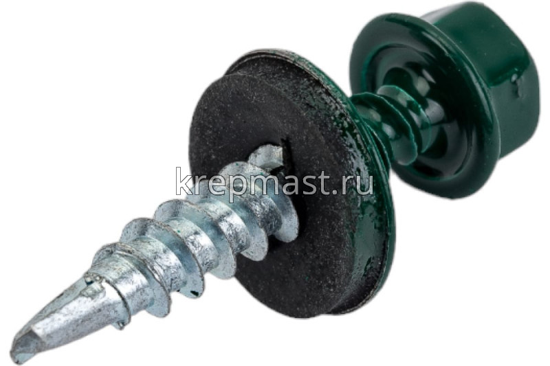 Кровельный саморез окрашенный с шайбой и резиновой прокладкой EPDM DIN 7504 4,8 х 29 по дереву RAL 6005 (цвет зеленый) - представляет из себя саморез с шестигранной головкой, фланцем и резиновой прокладкой для эффективного прижатия листового металла к основанию.