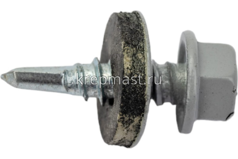 Кровельный саморез окрашенный с шайбой и резиновой прокладкой EPDM DIN 7504 5,5 х 19 по металлу RAL 7004 (цвет серый) - представляет из себя саморез с шестигранной головкой, фланцем и резиновой прокладкой для эффективного прижатия листового металла к основанию.