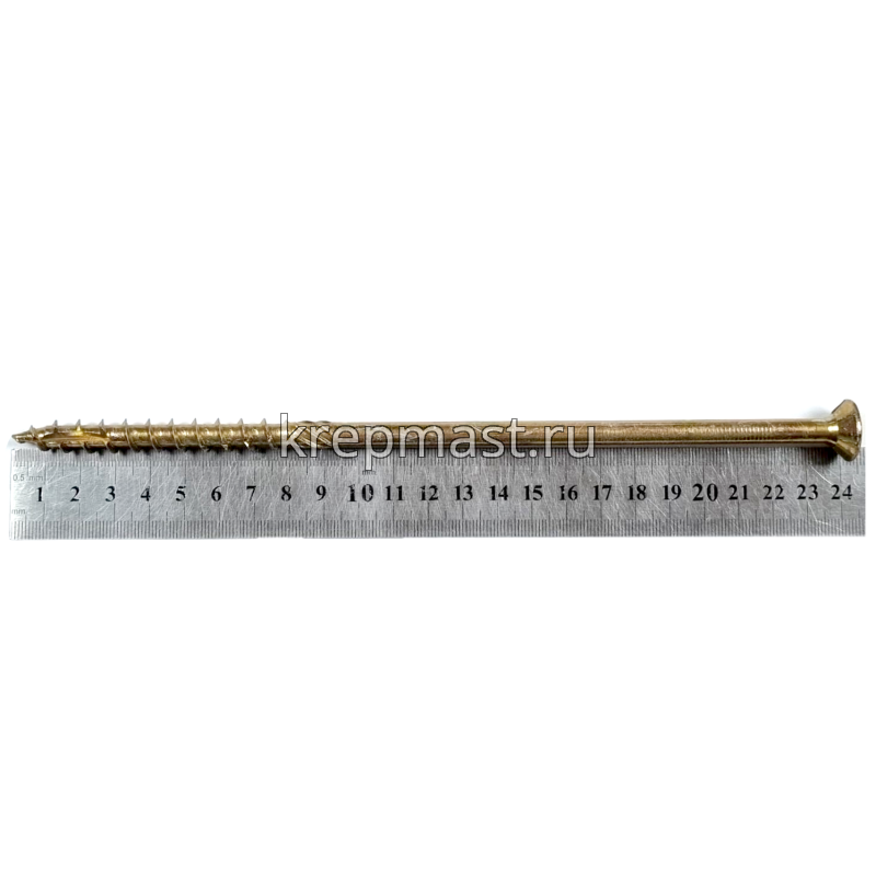 Конструкционный саморез по дереву с потайной головкой 10,0 х 240 совершает в одно движение такие операции, как накернивание, засверливание, зенковка и вворачивание.