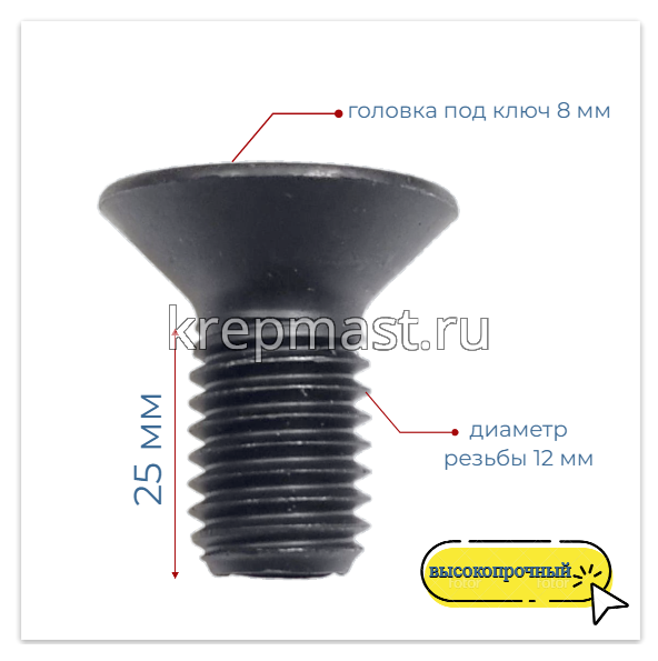 Винт с внут. шестиг. потай голов. 12х 25 кл.пр.10,9 DIN 7991 ЧЕРНЫЙ в интернет-магазине «Мастер Крепежа» по цене 42 руб. Более 10 наименований товаров в наличии в категории Винт DIN 7991 с внутр.шестигр. (потай) 12мм. Купить винт с внут. шестиг. потай голов. 12х 25 кл.пр.10,9 din 7991 черный в Лаишево выгодно Вы можете on-line на нашем сайте, или отправив заявку по почте, а также по телефону или в пункте выдачи компании г. Казань, ул. Татарстан, 9, магазин "Мастер Крепежа". Доставка по Республике Татарстан и другие регионы РФ.