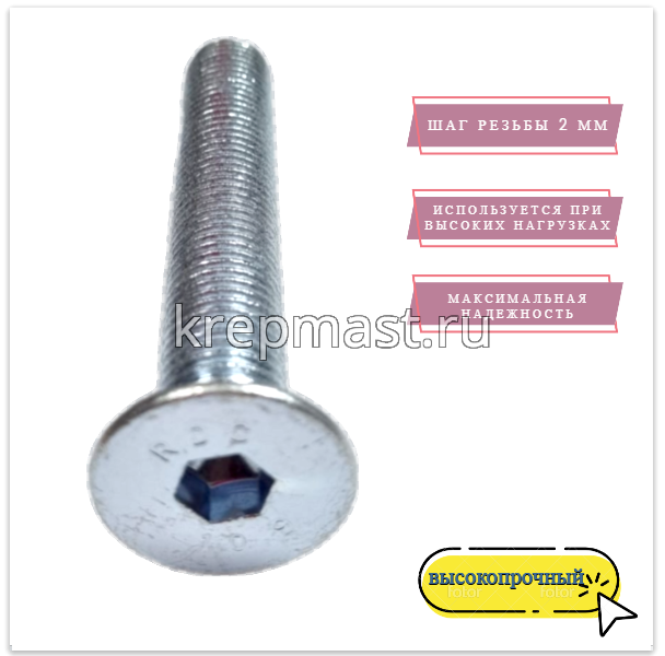 Винт с внут. шестиг. потай голов. 16х100 кл.пр.10,9 п/р DIN 7991 в интернет-магазине «Мастер Крепежа» по цене 358 руб. Более 5 наименований товаров в наличии в категории Винт DIN 7991 с внутр.шестигр. (потай) 16мм. Купить винт с внут. шестиг. потай голов. 16х100 кл.пр.10,9 п/р din 7991 в Лаишево выгодно Вы можете on-line на нашем сайте, или отправив заявку по почте, а также по телефону или в пункте выдачи компании г. Казань, ул. Татарстан, 9, магазин "Мастер Крепежа". Доставка по Республике Татарстан и другие регионы РФ.