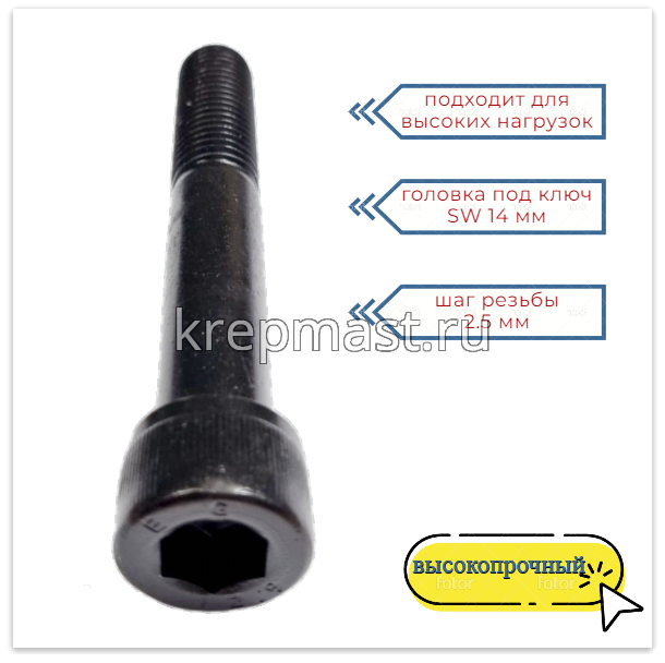 Винт с внутр.шестигранником 18 х120 черный кл.пр.12.9 н/р DIN 912 в интернет-магазине «Мастер Крепежа» по цене 450 руб. Более 5 наименований товаров в наличии в категории Винт с внутр.шестигранником 18мм. Купить винт с внутр.шестигранником 18 х120 черный кл.пр.12.9 н/р din 912 в Лаишево выгодно Вы можете on-line на нашем сайте, или отправив заявку по почте, а также по телефону или в пункте выдачи компании г. Казань, ул. Татарстан, 9, магазин "Мастер Крепежа". Доставка по Республике Татарстан и другие регионы РФ.