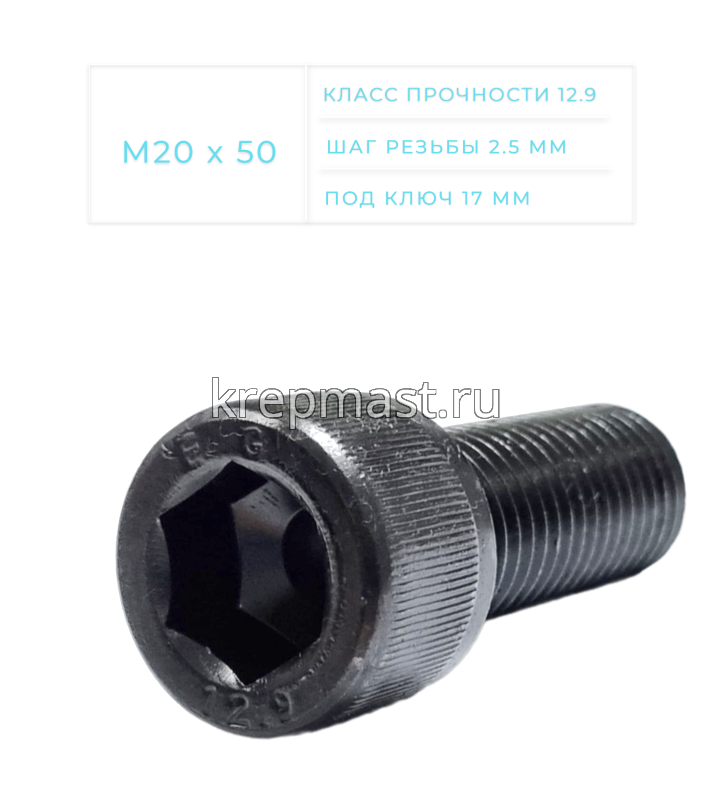 Винт с цилиндрической головкой и внутренним шестигранником DIN 912 М20 х 50 классом прочности 12.9 (ГОСТ 11738) применятеся в качестве деталей соединенияв машиностроении, станкостроении, строительстве.