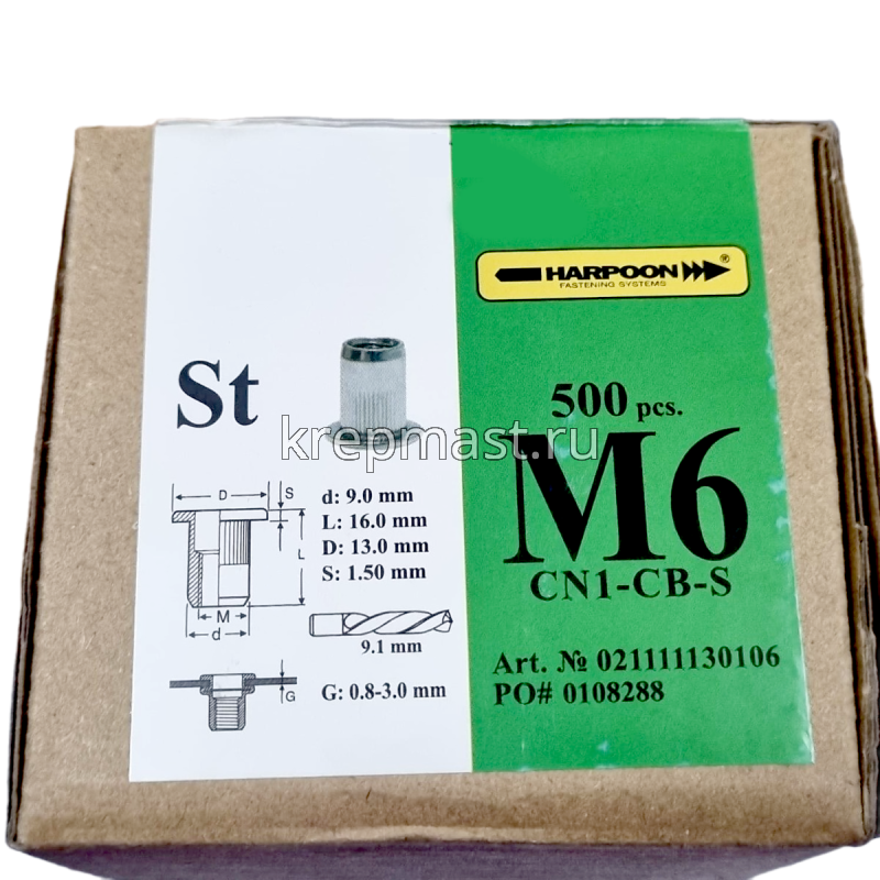 Гайка-заклепка HARPOON М 6 х 16,5мм CN1-CB-S цилиндрический борт, первая длина в Лаишево