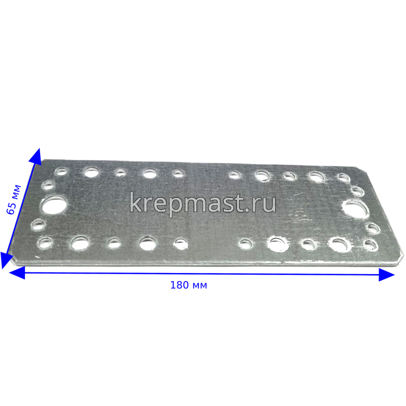 Крепежная пластина LP5 180x65x2,5мм применяется для соединения и упрочнения конструкций при помощи нескольких дюбелей, анкеров, саморезов.