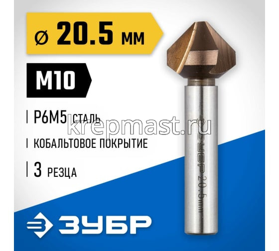 Зенкер ЗУБР конус, цилиндр.хвост.10мм(д.20,5х63мм) в Лаишево