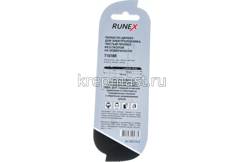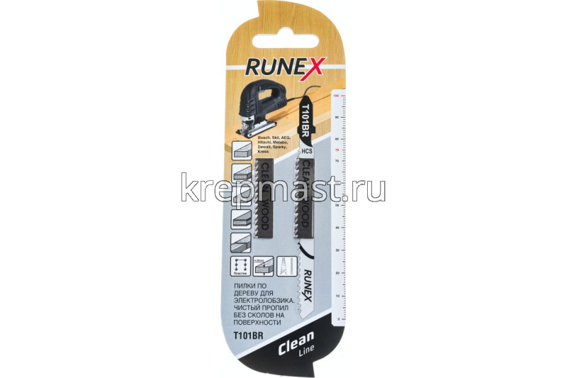 Пилки для электролобзика RUNEX Т 101 BR 100мм чистый распил, обратный зуб, 2 шт. подходят для чистого распила дерева, ДСП и пластика, толщиной от 4 до 30 мм.