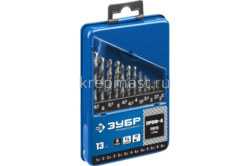 Набор сверел по металлу 13шт ЗУБР (1,5-6,5мм) металл.бокс в Лаишево