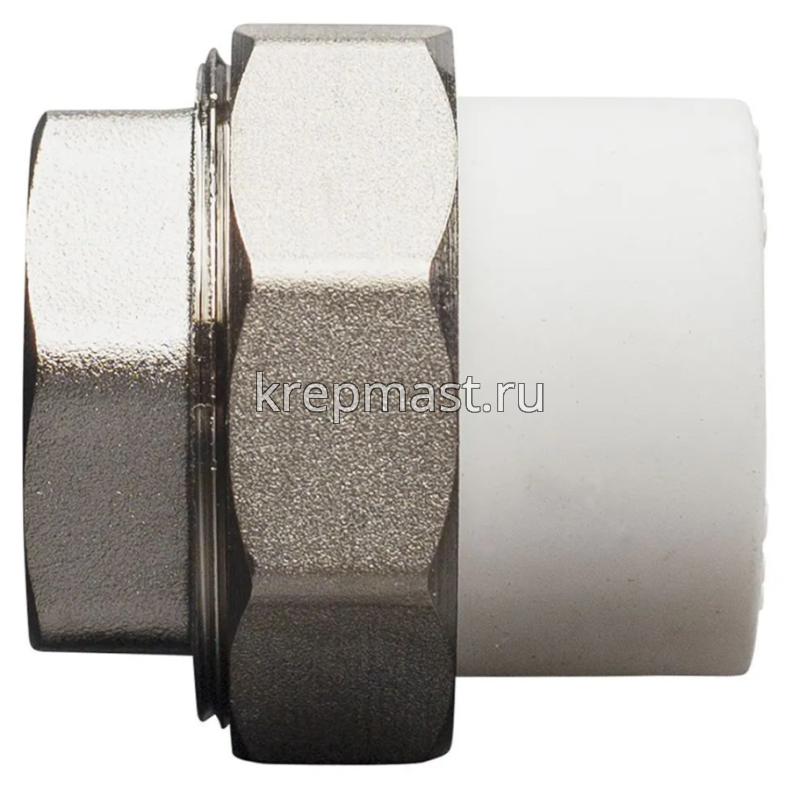 Комбинированная разъемная муфта (американка) ВР D 32- 1 п/п - разъемная муфта состоит из двух элементов, один из которых приваривается к полипропиленовой трубе посредством раструбной сварки, другой - соединяется с оборудованием или арматурой при помощи трубной резьбы.