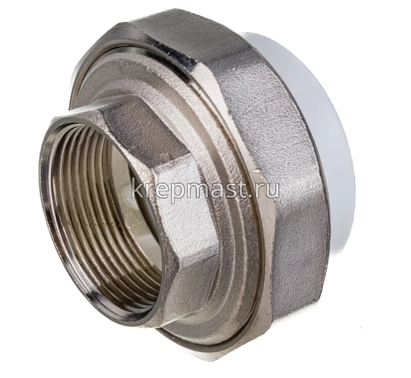 Комбинированная разъемная муфта (американка) ВР D 50-1 1/2 п/п - разъемная муфта состоит из двух элементов, один из которых приваривается к полипропиленовой трубе посредством раструбной сварки, другой - соединяется с оборудованием или арматурой при помощи трубной резьбы.