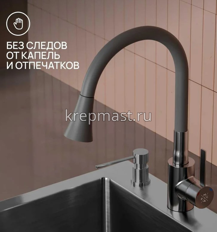 Смеситель д/кухни SUS123GY-016F НЕРЖАВЕЮЩИЙ - удачно дополнит мойку любого размера и конфигурации.