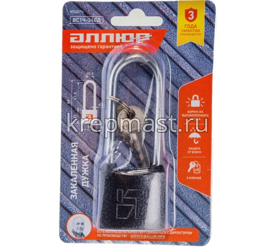 Замок навесной АЛЛЮР ВС1Ч-340Д d.5мм дл.дужка в интернет-магазине «Мастер Крепежа» по цене 250 руб. Более 31 наименований товаров в наличии в категории Замок навесной АЛЛЮР. Купить замок навесной аллюр вс1ч-340д d.5мм дл.дужка в Лаишево выгодно Вы можете on-line на нашем сайте, или отправив заявку по почте, а также по телефону или в пункте выдачи компании г. Казань, ул. Татарстан, 9, магазин "Мастер Крепежа". Доставка по Республике Татарстан и другие регионы РФ.