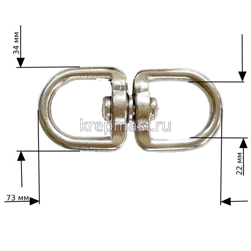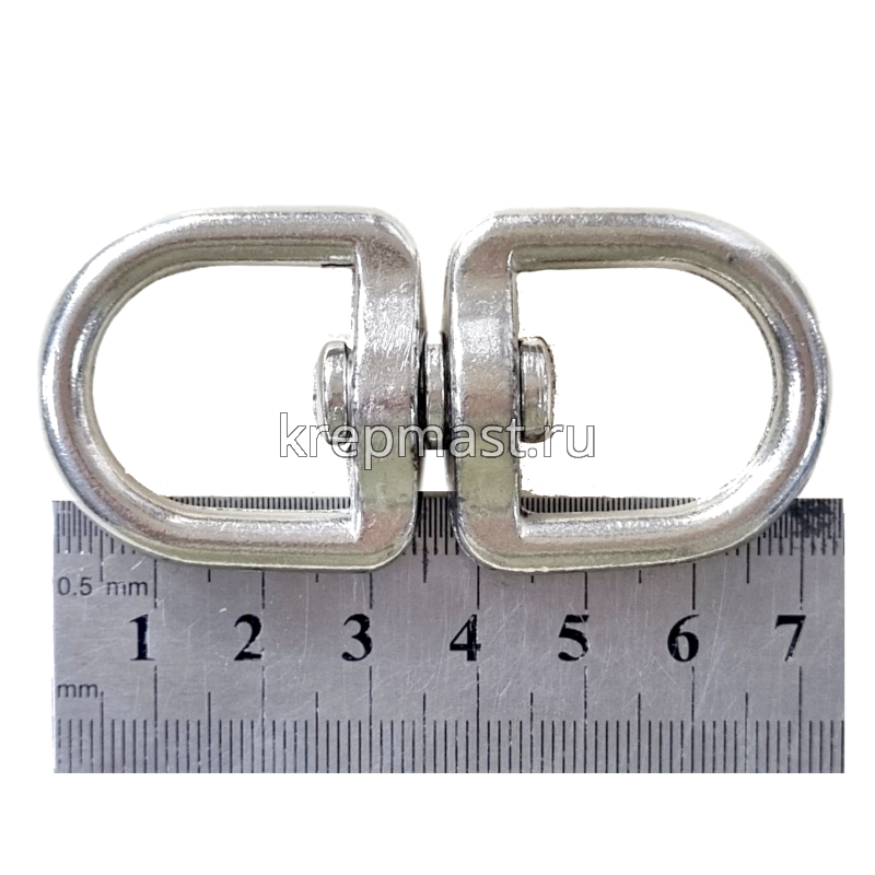 Вертлюг 6,0 мм —соединительное звено двух частей механизма (или звеньев цепи), позволяющее каждой из них вращаться вокруг своей оси, например звено между подъёмным механизмом и грузом. Предотвращает скручивание веревки, тем самым избавляет от лишних нагрузок.